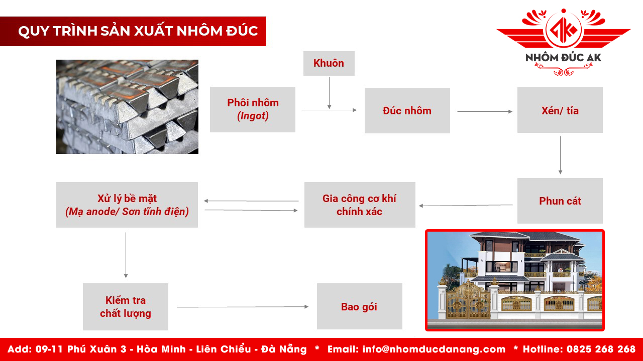Quy trình sản xuất cổng nhôm đúc bằng công nghệ đúc nhôm hút chân không Nhật Bản là công nghệ mới cao cấp nhất hiện nay được AK đưa về Việt Nam chuyển giao uy tín số 1 Việt Nam.