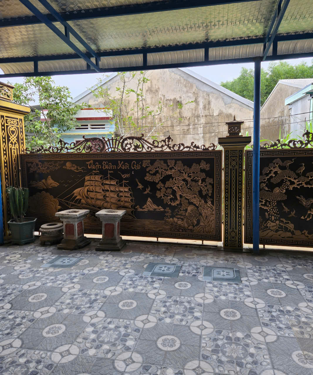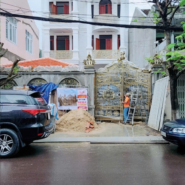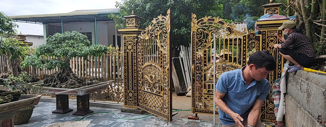 Thi công cổng nhôm đúc cho biệt thự nhà Chiến, Bình Sơn, Quảng Ngãi