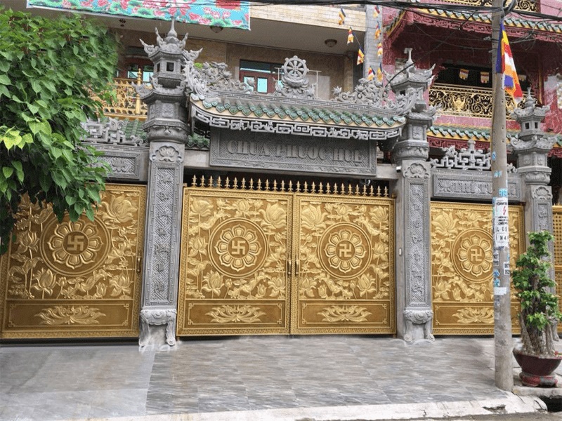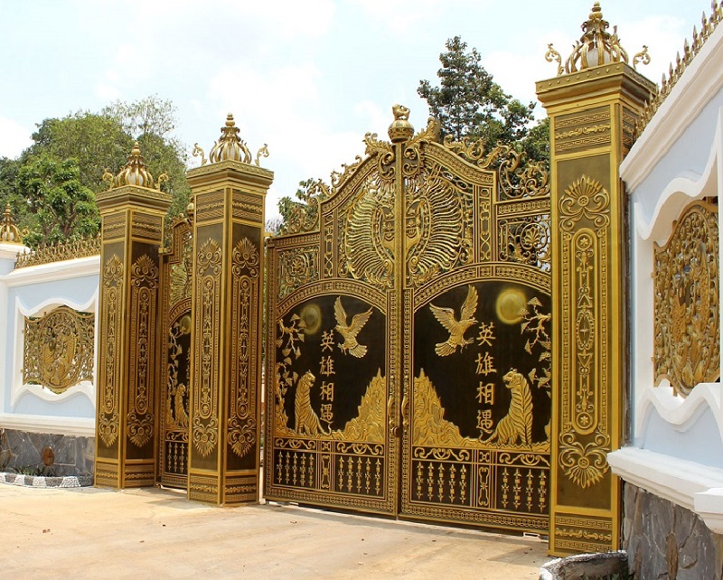 Cổng nhôm đúc mạ đồng vàng chín rồng