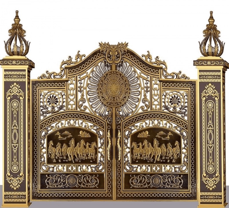 Mẫu cổng này lấy ý tưởng từ bức tranh mã đáo thành công, với 8 con ngựa đang tung vó đi nước đại, nhìn về 1 hướng, cùng chung chí hướng và còn mang ý nghĩa cổ vũ đồng đội tiến lên. Thể hiện cái ý chí khát vọng, niềm tin, hướng tới thành công của gia chủ.